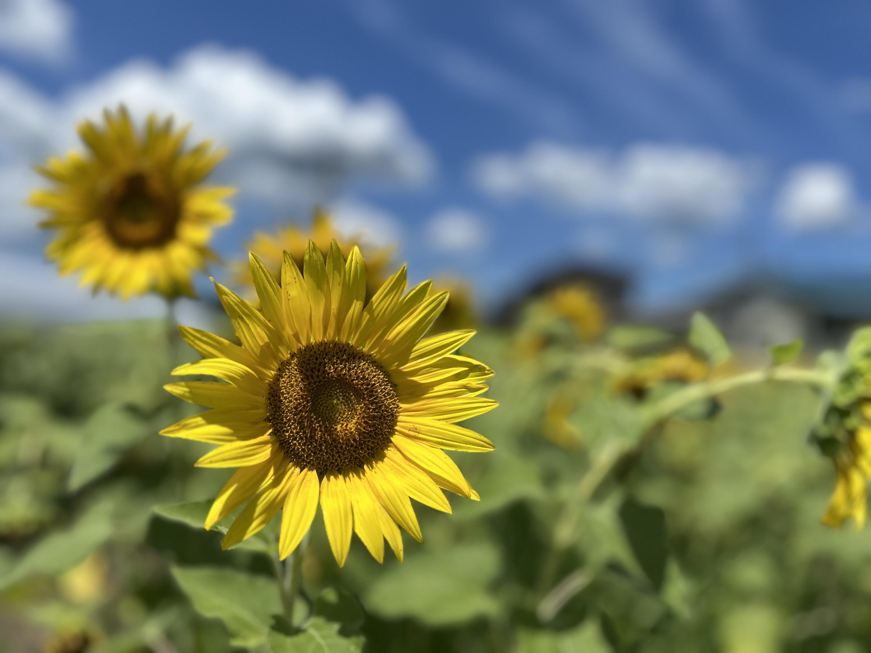 ひまわりの新芽の食害のため例年の1/3のひまわり畑になりますひまわりの花で埋め尽くされた畑ではなく空間の目立つひまわり畑に なりそうです |